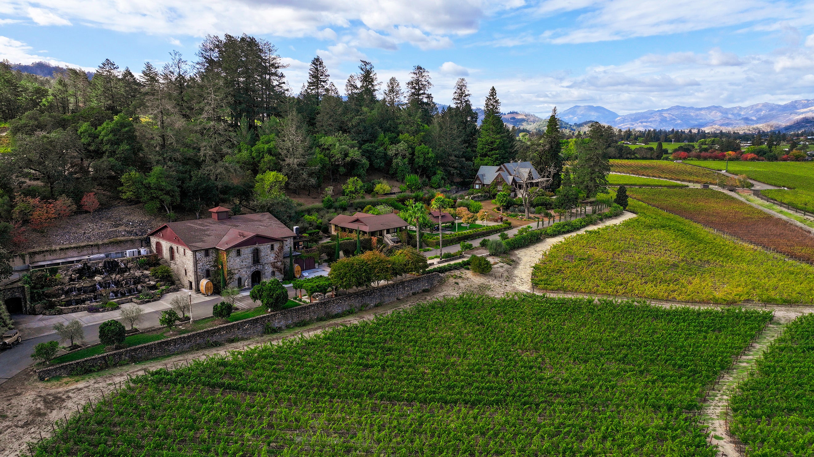The estate’s rich history dates back to 1885 and it was built on one of California’s pioneering stone gravity-flow wineries, originally constructed by Scottish brothers James and William Rennie. Inspired by their uncle, Sir John Rennie, the visionary engineer behind London Bridge, the Rennie brothers left an indelible mark on Napa Valley, building the original winery from local stone and financing the Pope Street stone bridge in St. Helena, which stands as a landmark to this day. Adding to this historical significance, Napa Valley pioneer Louis M. Martini once called this property home.