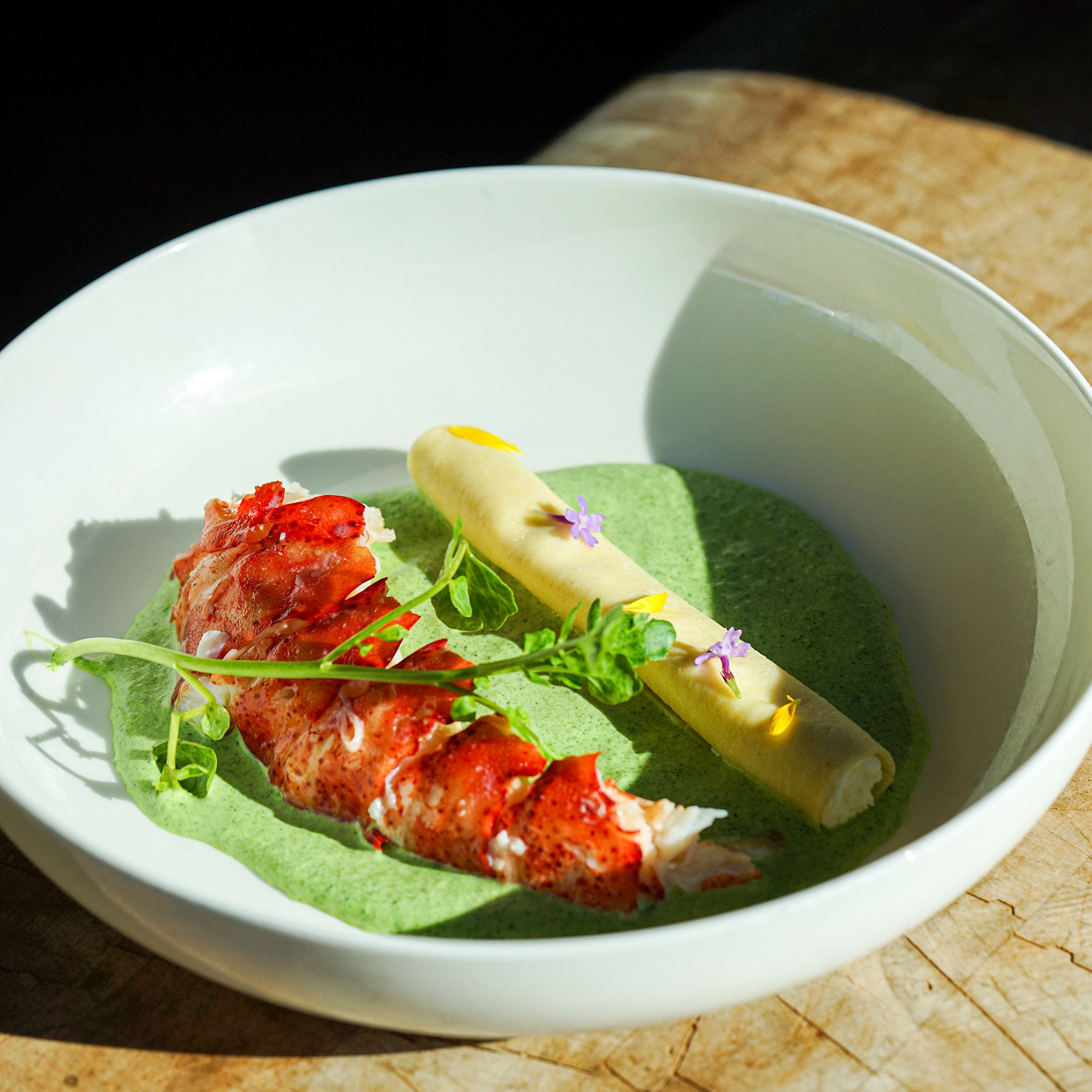 The first course was quite luxurious, a Butter Poached Lobster dish, accompanied by sweet corn, cannelloni, and a touch of watercress. This indulgent starter was perfectly paired with the 2022 Chardonnay from the renowned Sangiacomo Vineyard of Sonoma County.